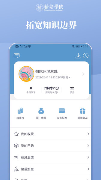 连续听课或邀请好友注册可获得相应学分,学分可兑换精塾币使用,建立正向学习激励机制;