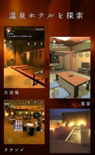 游戏中玩家将置身于一座神秘的温泉旅馆,与其他角色一起探索这个充满谜题的世界。游戏采用直观的触控操作方式,简单易上手却充满深度。每个房间都隐藏着独特的线索,玩家需要仔细观察环境细节,与NPC互动获取关键信息。随着剧情推进,你将逐步揭开温泉旅馆背后隐藏的秘密,体验一段难忘的冒险旅程。