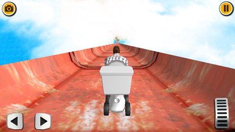 游戏初期提供多种基础轮子供选择,建议新手从稳定性较高的轮椅开始练习。操控系统采用直观的触屏按钮,左侧控制方向,右侧调节速度,需要特别注意保持载具平衡。每个成功完成的坡道都会给予丰厚奖励,这些资金可用于购买性能更好的载具。建议先熟悉基础操作再挑战高难度赛道,逐步掌握不同载具的特性差异。