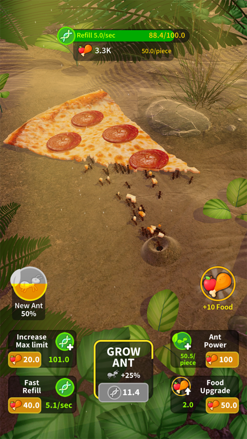 游戏拥有丰富多样的玩法系统,你需要精心照料工蚁们的日常需求,通过提供不同类型的食物来维持它们的活力。随着蚁群等级的提升,你将逐步解锁更多神秘区域,每个区域都隐藏着独特的资源和挑战。游戏还提供了高度自由的蚂蚁培育系统,玩家可以创造出拥有特殊能力的专属蚂蚁品种,每种蚂蚁都拥有不同的生命周期和特性。此外,游戏中收录了数十种各具特色的食物资源,从常见的树叶到稀有的昆虫,每种食物都能为蚁群提供不同时长的生存能量。