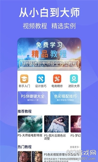 PS达人速成版是一款专为手机用户打造的Photoshop学习神器,无论你是零基础小白还是有一定经验的修图爱好者,都能在这里找到适合自己的学习路径。这款软件汇集了海量免费PS教程资源,从最基础的工具栏使用到高级的实战技巧,通过系统化的课程设置,帮助用户快速掌握专业修图技能,轻松实现从入门到精通的蜕变。