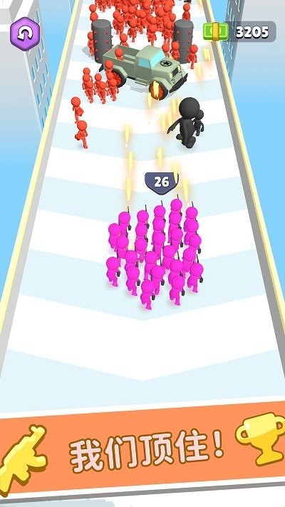 游戏中的战斗场面极其壮观,随着参与人数的增加,场面将变得更加震撼人心。玩家可以亲眼目睹数百人同时参与战斗的宏大场景,这种视觉冲击力是其他游戏难以比拟的。操作方式经过精心设计,简单易上手,只需轻松控制人群移动即可完成各种战术动作。游戏采用简约风格的人物形象设计,每个角色都独具特色,搭配精美细致的城市布局,营造出一个既真实又充满想象力的游戏世界。在限定的时间内,只有拥有最多人数的队伍才能获得最终胜利,这种竞争机制让游戏充满了紧张感和挑战性。