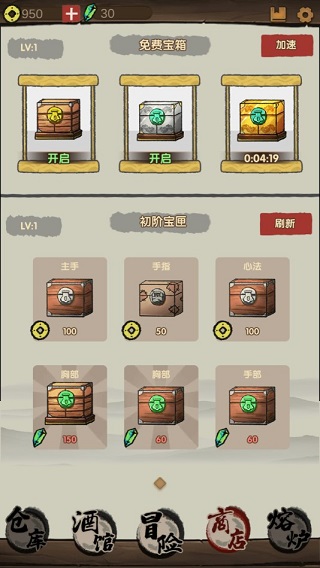 游戏中共有两种初始角色供玩家选择,虽然角色数量不多,但每个角色都有独特的成长路线和技能体系。游戏的核心玩法集中在关卡挑战上,系统分为仓库、酒馆、冒险、商店和熔炉五大功能模块。仓库用于存放玩家在冒险中收集的各种战利品;酒馆是角色训练和能力提升的重要场所;冒险模块则是游戏的主要战斗玩法,设置了多个章节关卡,每个章节的敌人数量和难度都各不相同,越往后挑战性越强。玩家需要通过商店开启宝箱,收集整理装备,利用熔炉系统强化装备,从而不断提升角色实力。