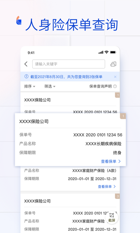 内置智能截屏功能,用户可以直接在软件中对保单列表等重要信息进行快速截图,满足不同场景下的使用需求。