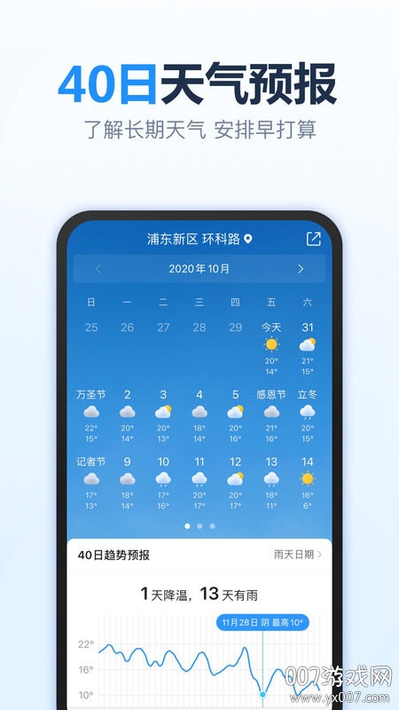 基于精准定位的逐小时预报和分钟级降雨预报功能,让您获得最及时的天气信息。27种气象生活指数及温馨提示,可根据个人需求自定义关注指数。长达15天的预报周期,完整呈现天气、温度、风力风向及变化趋势。第一时间发布国内全部县级以上城市的气象预警信息,包括台风登陆等重要通知,保障您的安全。