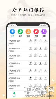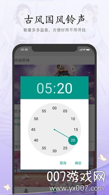 铃声闹钟2021最新版是一款融合了古典韵味与现代科技的智能闹钟应用,专为追求品质生活的用户打造。这款应用不仅拥有超多古风元素,还提供了丰富多样的叫醒功能,包括赤诚男神、深沉将军、温润公子、文雅学士等不同风格的声音类型,每种声音都经过精心录制,音质清晰自然,能够满足你对声音的所有幻想。此外,你还可以将这些声音设置为短信铃声,让你的手机更具个性化。