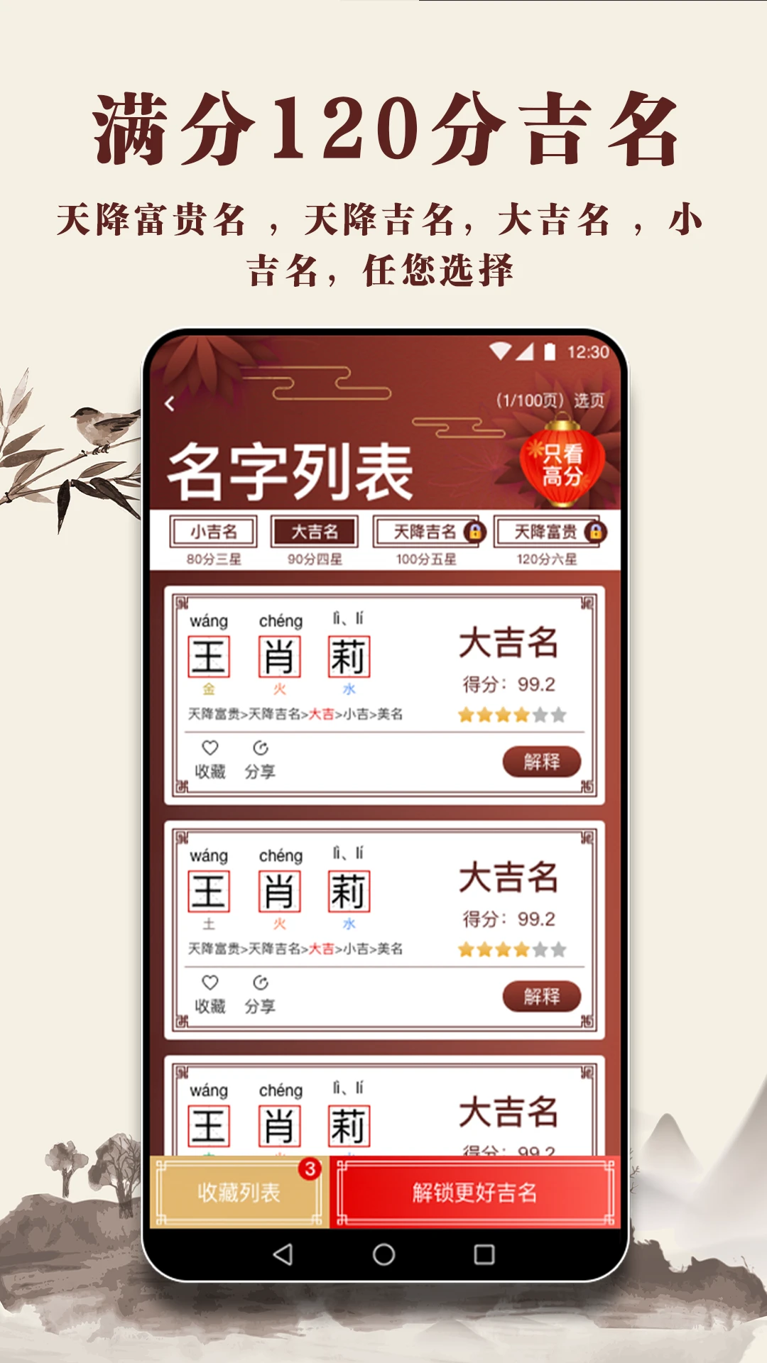 上万个免费吉名推荐,更有专属高级定制款,富贵吉名常伴一生