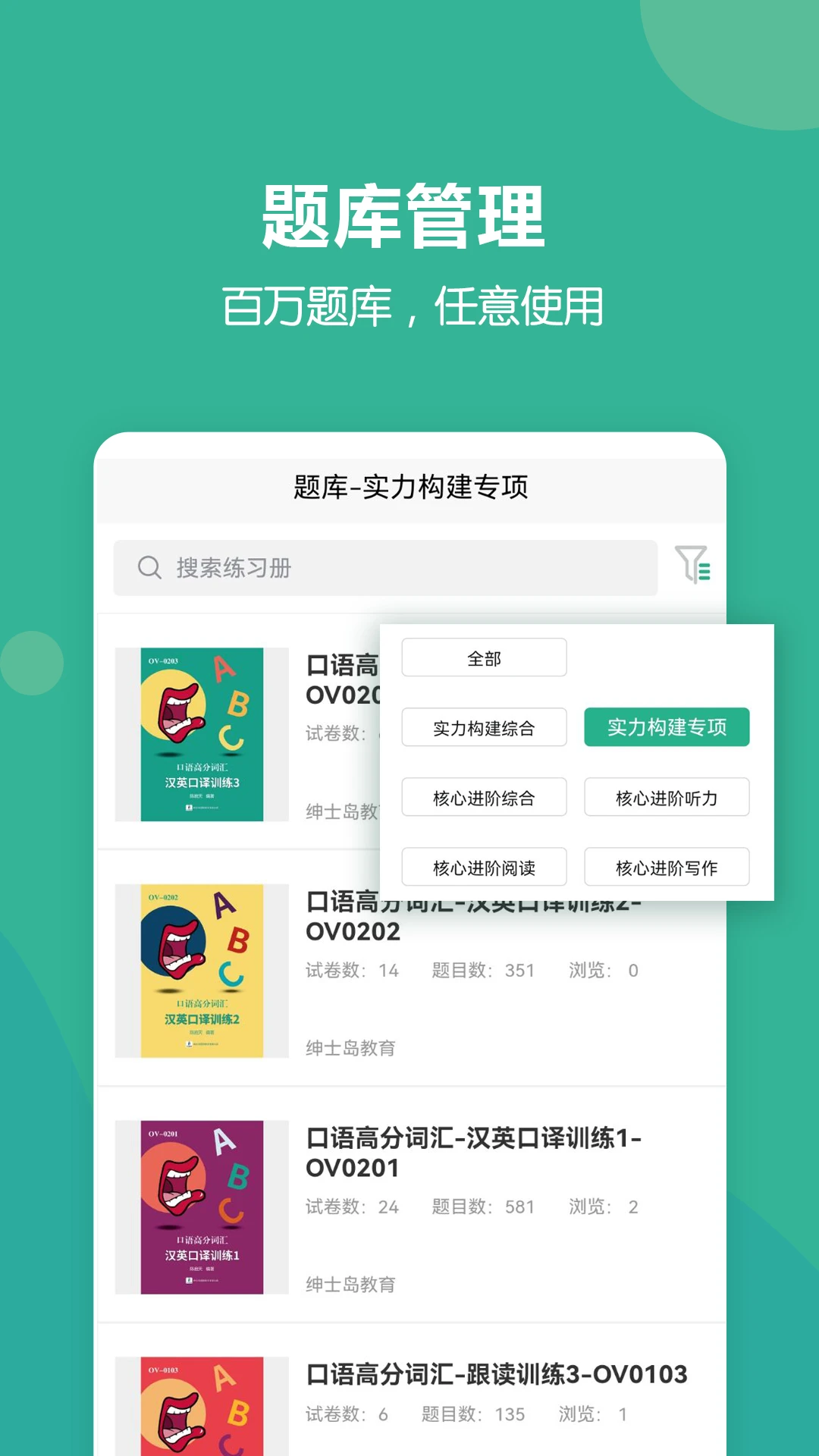 百万级智能题库:覆盖从基础到高阶的英语学习需求,包含四六级、雅思、托福等考试真题和模拟题。
