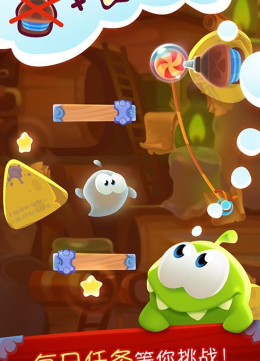 c、特别设计的Boss关卡将考验玩家的综合能力,需要巧妙运用吃糖果和割绳子的技巧才能通关