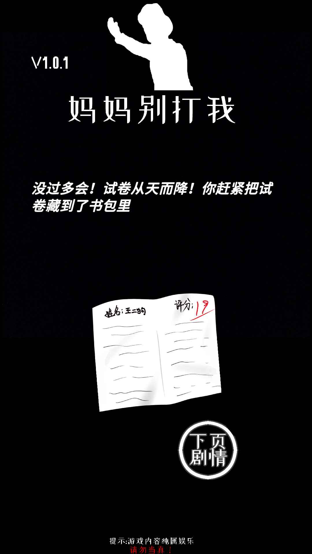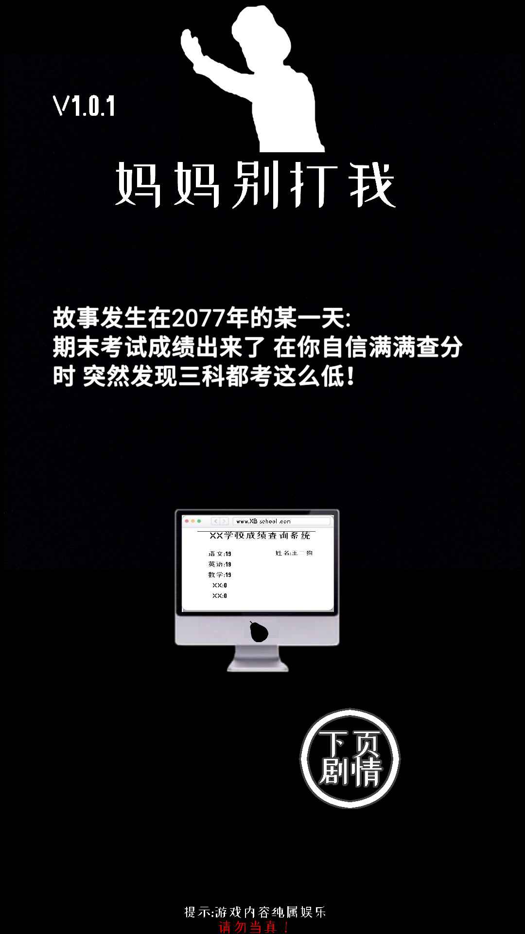 《妈妈别打我》是一款充满黑色幽默的剧情解谜游戏,玩家将扮演一名在2077年期末考试中惨遭滑铁卢的学生。游戏通过独特的文字叙事和互动玩法,让玩家体验与妈妈斗智斗勇的刺激过程。虽然没有华丽的画面,但精妙的情节设计和无厘头的解谜方式令人捧腹。每次考试失利后,你都需要发挥创意,将试卷藏在家中的各个角落,同时要避开妈妈的火眼金睛。这款游戏不仅考验玩家的观察力,更是一场关于家庭关系的另类思考。
