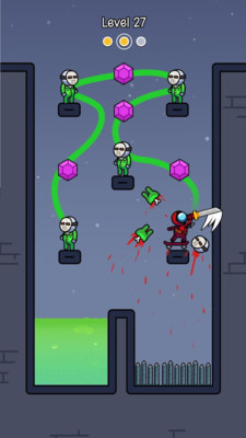 身为一名冷酷的杀手,你将接受一系列高难度的任务,在充满机关和敌人的场景中完成挑战。游戏的核心玩法是通过手指在屏幕上绘制路线,角色会沿着你设定的路径自动前进。滑板不仅是移动工具,还能帮助你做出各种炫酷的特技动作,比如飞跃障碍或滑行通过狭窄通道。每个关卡都经过精心设计,需要玩家灵活运用策略才能顺利通关。