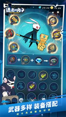 精美高清的游戏画面,给你带来非常多的挑战过程,细腻的角色动作和炫酷的技能特效让战斗更加精彩。游戏还支持自定义角色外观,打造属于你的独特兔子战士。