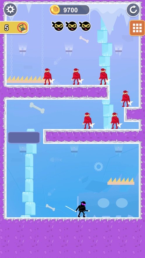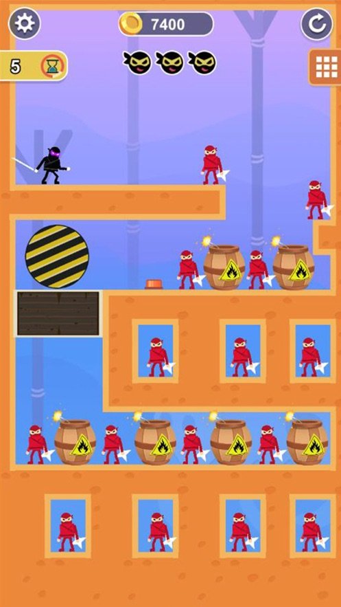 忍者一刀切的游戏画面采用了简约而不失精致的风格,色彩搭配和谐,角色设计生动有趣。游戏拥有丰富的关卡系统,每个关卡都经过精心设计,难度逐渐提升,让玩家在挑战中不断成长。此外,游戏还提供了多种招式技能供玩家解锁和升级,通过组合不同的招式,你可以创造出属于自己的独特战斗风格。无论是快速连击还是强力必杀技,都能让你在战斗中占据优势。