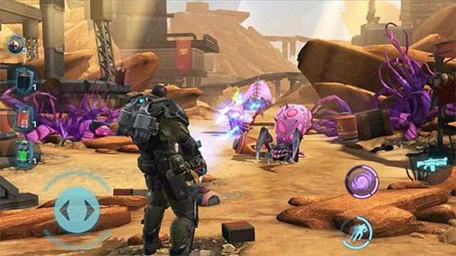 游戏采用直观的双摇杆操作方式:左摇杆控制角色移动,右摇杆调整射击方向。战斗中可以通过快速滑动瞄准键切换锁定目标,点击右下角的翻滚按钮可以躲避敌人攻击。当面对强大敌人时,别忘了使用左上角的特殊武器按钮发动强力攻击。狙击枪是远程击杀的利器,但需要注意装弹时间和后坐力影响。