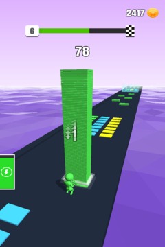 游戏的核心特色在于其独特的颜色收集机制。每条道路都会设定一种目标颜色,玩家需要专注收集该颜色的木板,而忽略其他颜色的干扰。道路上的木板会以混合形式出现,增加了游戏的难度和趣味性。每次收集任务都有明确的颜色要求,玩家必须保持注意力集中,避免因误收其他颜色而影响得分。这种设计既考验玩家的眼力,也锻炼了快速决策能力,让每一关都充满新鲜感。