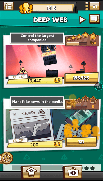 加入光明会的行列,通过一切必要的手段影响尽可能多的人!游戏中的角色包括流行偶像、共济会狂热分子、世界领袖甚至长着鳞片皮肤的外星人,他们都与光明会有着千丝万缕的联系。玩家可以运用精神控制、假新闻、音乐视频中的隐藏信息,甚至在水源中投放化学物质等方式,逐步实现统治世界的目标。这款光照会模拟器点击器为玩家提供了极其广泛的途径,让你体验前所未有的策略与冒险。