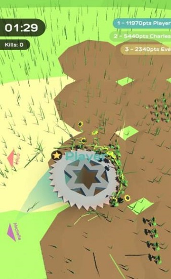 游戏最引人注目的亮点是其创新的成长机制。玩家通过切割木头来让锯子不断变大,这种直观的成长方式让每场对战都充满变数。随着锯子体积的增长,你不仅能轻松消灭对手,还能解锁特殊技能和特效。