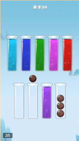 在游戏中,你需要精准地将所有液体完美地倒入对应的玻璃瓶中,任何一滴液体的错误流动都可能导致挑战失败。当液体颜色发生变化时,需要特别注意,如果错误颜色的液体流入终点试管,游戏将判定为失败。成功的关键在于将相同颜色的液体倒入同一个试管中,这样才能顺利完成挑战。每个关卡中都设计了多种水流路径,玩家需要谨慎操作,避免让不同颜色的液体意外混合。掌握这些技巧后,你将能够更高效地解决难题,获得更高的分数评价。