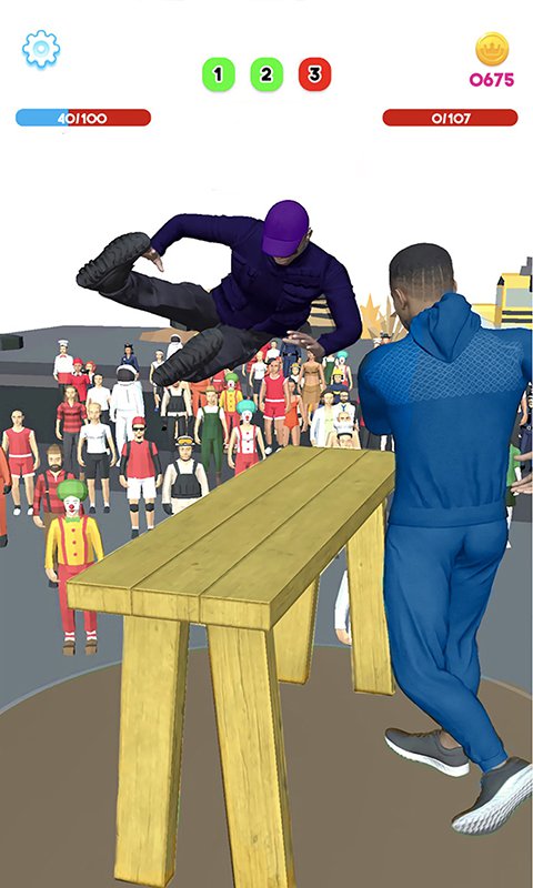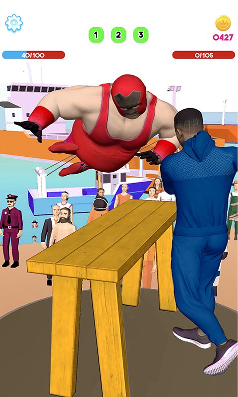 游戏最大的亮点在于其丰富的角色阵容和多样化的竞技模式。玩家将面对形形色色的挑战者,从肌肉发达的壮汉到灵活敏捷的年轻人,每个对手都有独特的战斗风格。游戏特别设计了蓄力系统,当能量条满格时可使出威力惊人的必杀技,一击将对手打趴在地。比赛过程中还会随机出现各种增益道具,比如临时提升巴掌威力的能量饮料,或是能抵挡一次攻击的防护头盔,这些元素都大大增加了游戏的策略性和可玩性。