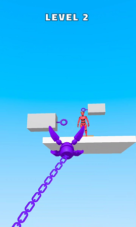 游戏的核心玩法围绕飞钩展开,玩家需要通过精准的抓取和摆荡来前进。独特的飞钩机制让每一次抓取都充满变数,玩家需要根据地形和障碍物灵活调整策略。在高空摆荡的过程中,流畅的物理表现带来极佳的手感反馈,让玩家真切感受到速度与重力的完美结合。游戏操作简单直观,只需拖动屏幕即可控制飞钩方向,即使是新手也能快速上手。随着关卡的推进,游戏会引入更多有趣的元素,如移动平台、特殊道具等,让挑战更加丰富多彩。