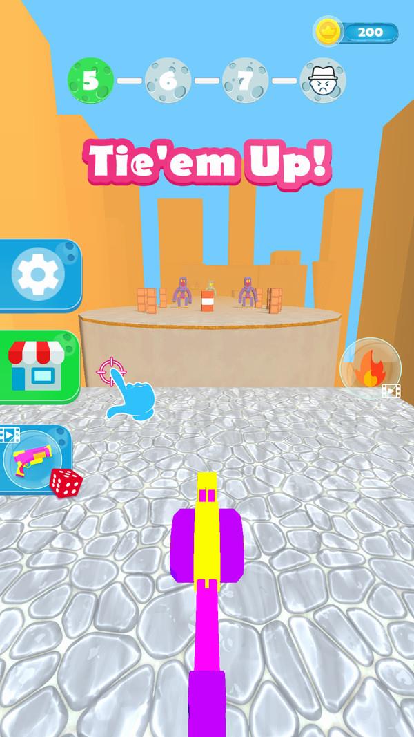 《捆绑大师》是一款将物理模拟与策略玩法完美结合的休闲游戏。在色彩明快的场景中,玩家需要运用各种绳索道具,通过精准的射击角度将敌人一网打尽。游戏包含数十个精心设计的关卡,每个关卡都有独特的敌人配置和地形障碍,需要玩家不断调整战术。特别设计的Boss战更是充满挑战,只有掌握绳索反弹、多重捆绑等高级技巧才能获胜。游戏还支持创意工坊,玩家可以自制关卡与他人分享。