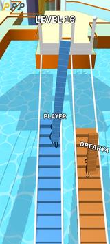 桥梁赛跑的最大特色在于它将跑酷与建造玩法完美结合,为玩家带来全新的游戏体验。在游戏中,你需要一边奔跑一边收集建筑材料,同时还要规划桥梁的搭建路线。游戏场景设计独特,从一座屋顶到另一座屋顶的桥梁建造比赛让玩家仿佛置身于一场高空冒险。地面上的桥梁材料会随机刷新,玩家需要快速反应,抓住机会收集自己所需的材料。此外,游戏还提供了多种不同的桥梁设计方案,玩家可以根据自己的喜好选择最适合的建造方式,享受从无到有的创造乐趣。