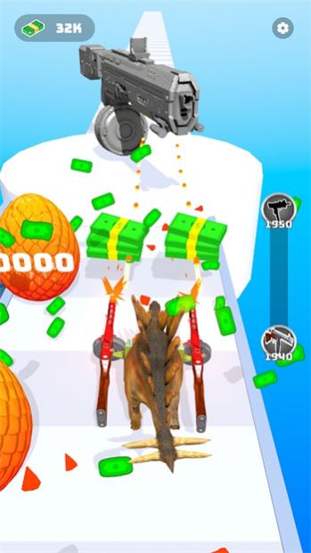 在游戏中,玩家需要通过合成相同等级的恐龙来提升它们的跑酷能力和战斗力。收集赛道上的金币和各种道具至关重要,它们能帮助你在关键时刻扭转局势。游戏还设有多种特殊技能系统,玩家可以合理运用这些技能来增强生存能力,躲避敌人的攻击。掌握好时机使用加速、无敌等技能,是通关的关键所在。