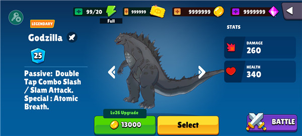 哥斯拉vs金刚联盟最新版是一款令人热血沸腾的动作格斗类手游,游戏以好莱坞经典怪兽IP为背景,为玩家打造了一个震撼人心的怪兽对决世界。游戏采用顶尖的3D引擎技术,画面表现力极为出色,无论是哥斯拉喷射原子吐息时的能量特效,还是金刚挥舞巨拳时的肌肉线条,都展现出了电影级的视觉冲击力。游戏场景设计极具创意,从繁华的现代都市到神秘的远古遗迹,每个战场都经过精心打磨,破坏效果真实震撼,让玩家仿佛置身于史诗级的怪兽大战之中。