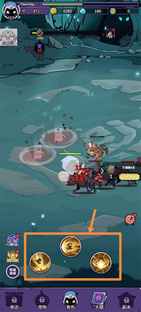 达到一定程度的时候会获得天赋点,别忘了进行升级哦。
