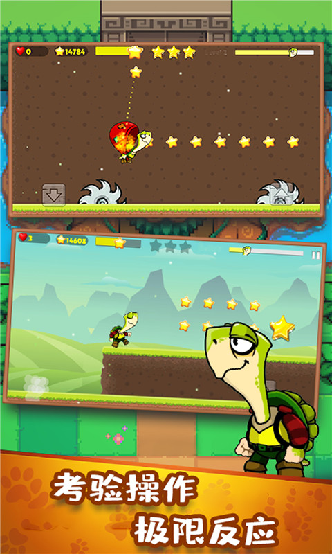 《奇幻宝贝》是一款以乌龟为主角的横版跑酷类手机游戏,采用创新的物理引擎打造出流畅的动作体验。游戏中设计了数十个风格迥异的场景,从茂密的原始森林到神秘的古代遗迹,每个场景都隐藏着独特的机关和彩蛋。玩家需要通过精准的跳跃、滑行等操作来克服重重障碍,同时还要收集散落的星星来解锁特殊技能。游戏还加入了丰富的角色成长系统,玩家可以升级乌龟的各项能力,打造属于自己的专属跑酷高手。此外,游戏还设有隐藏关卡和限时挑战模式,为玩家带来更多惊喜和挑战。