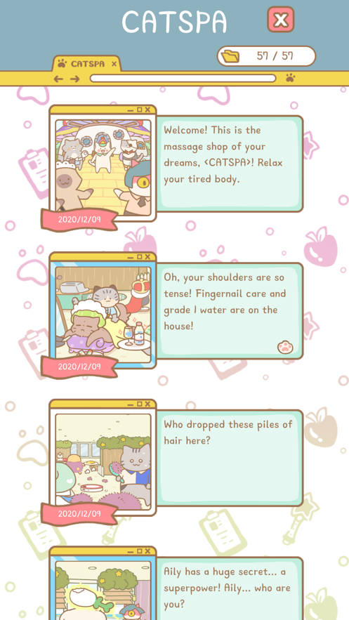 每天的收益都会不断的提升,尽快让水疗馆变得更加豪华吧!游戏采用渐进式的成长系统,你的每一个决策都会影响店铺的发展方向。通过合理的经营策略,你可以将最初的小店打造成猫咪界的顶级水疗中心。游戏还支持社交功能,可以参观好友的店铺,互相学习借鉴。