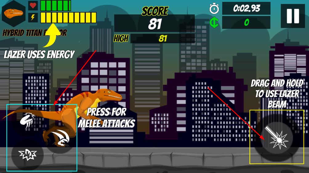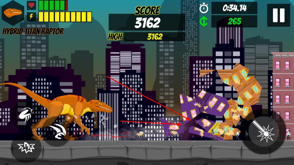 点击左侧虚拟摇杆可施展近战攻击,包括撕咬、爪击等动作,而右侧按钮可释放激光束等远程攻击。两种攻击方式各有优势,近战破坏力强但范围小,远程攻击范围大但消耗能量快。玩家需要根据当前情况灵活切换,比如用激光束对付远处的直升机,用近战攻击摧毁近处的建筑。