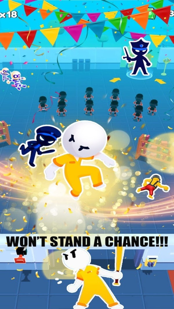 呆萌的火柴人造型配合Q弹的物理效果,看着他们蹑手蹑脚躲避探照灯的样子特别解压。成功逃脱时的集体欢呼动画更是成就感爆棚。