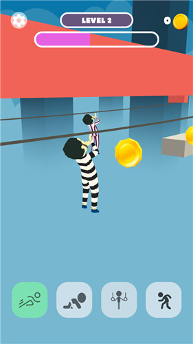 游戏特别设计了动态难度系统,随着玩家技能的提升,关卡挑战也会相应调整,确保游戏始终保持着恰到好处的挑战性。在越狱过程中,玩家可以收集散落在各处的金币,这些金币不仅可以用来购买道具,还能解锁特殊技能和角色皮肤。每次成功完成挑战后,玩家都能获得丰厚的奖励,这些奖励将帮助你在后续的冒险中更加游刃有余。