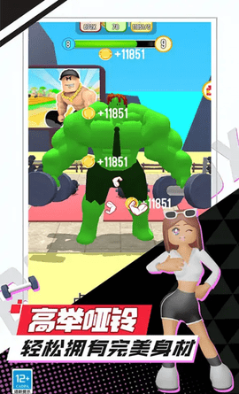 高度可定制的角色:玩家可以自由调整角色的体型、肌肉线条、肤色等外观特征,还能通过训练重点的不同来塑造独特的肌肉形态。游戏还提供了丰富的服装和配饰系统,让玩家可以打造出独一无二的健身达人形象。