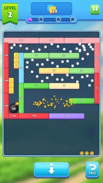 游戏设有丰富多样的任务系统,完成指定任务即可获得精美奖品和实用道具,助您在后续关卡中更轻松地取得胜利。通过收集游戏金币,您可以升级小球的弹射能力,使其拥有更持久的弹跳效果,实现令人满意的连续弹射。最重要的是,您需要精准计算每次发射的角度和力度,完美摧毁更多砖块,顺利通过每一个精心设计的关卡挑战。