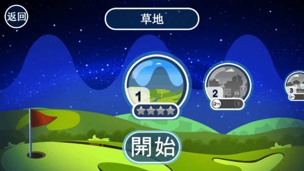 选择Lawn标准球场作为起点,点击数字1开启首关挑战,注意红框标注的Play按钮位置。每个球场都设有独特地形特征,建议先观察场景布局再行动。