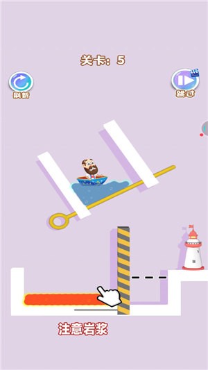 救救老船长是一款充满趣味与挑战的解谜冒险类游戏,以其简单易上手的操作和丰富多样的玩法深受玩家喜爱。游戏中,玩家将扮演一位机智的冒险者,面对被困在海上的老船长,需要通过观察、思考和策略来帮助他脱离困境。每个关卡都设计巧妙,难度逐渐提升,既考验玩家的逻辑思维能力,又能带来满满的成就感。游戏过程中,稍有不慎就会导致失败,因此需要玩家保持专注和谨慎。如果你喜欢解谜和冒险类游戏,救救老船长绝对值得一试!