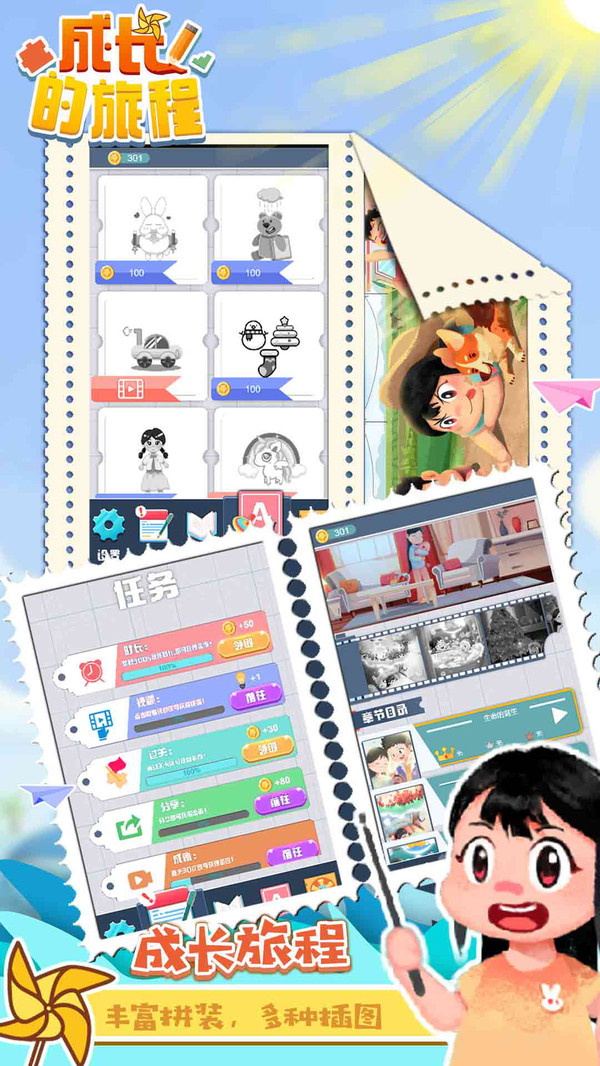 《成长的旅程》是一款充满温情与回忆的休闲益智手游,通过独特的拼图玩法带领玩家重温从婴儿到成人的成长历程。游戏以清新可爱的美术风格呈现,将人生中那些珍贵的瞬间化作一幅幅精美的拼图,让玩家在拼凑碎片的过程中,重新感受童年的纯真与美好。从第一次学步到校园生活,从家庭旅行到乡村探险,每个主题篇章都精心设计了丰富的关卡,让玩家在游戏中体验成长的酸甜苦辣。