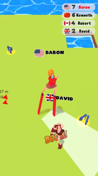 在最新版本中,游戏玩法更加丰富多样。玩家需要收集散落在关卡中的高跟鞋道具,同时还要与其他对手展开激烈对抗。你可以通过巧妙的走位将对手踢出赛道,或者将他们推入水中淘汰。游戏还特别设计了"高跟鞋挑战"模式,让那些认为穿高跟鞋走路很简单的人亲身体验其中的难度。每个关卡都经过精心设计,既考验玩家的反应能力,又充满欢乐的趣味性,绝对能给你带来意想不到的惊喜。