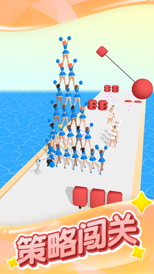 作为一名技艺精湛的啦啦队队长,你将带领团队参加一场激动人心的挑战赛。在赛道上,你需要灵活运用跳跃、翻转等动作跨越各种障碍,同时通过接触沿途的团队成员来扩充队伍规模。值得注意的是,遇到障碍时队员数量可能会减少,但真正的啦啦队高手总能化险为夷。游戏考验玩家的反应速度和策略思维,每一次成功的闯关都能带来满满的成就感。