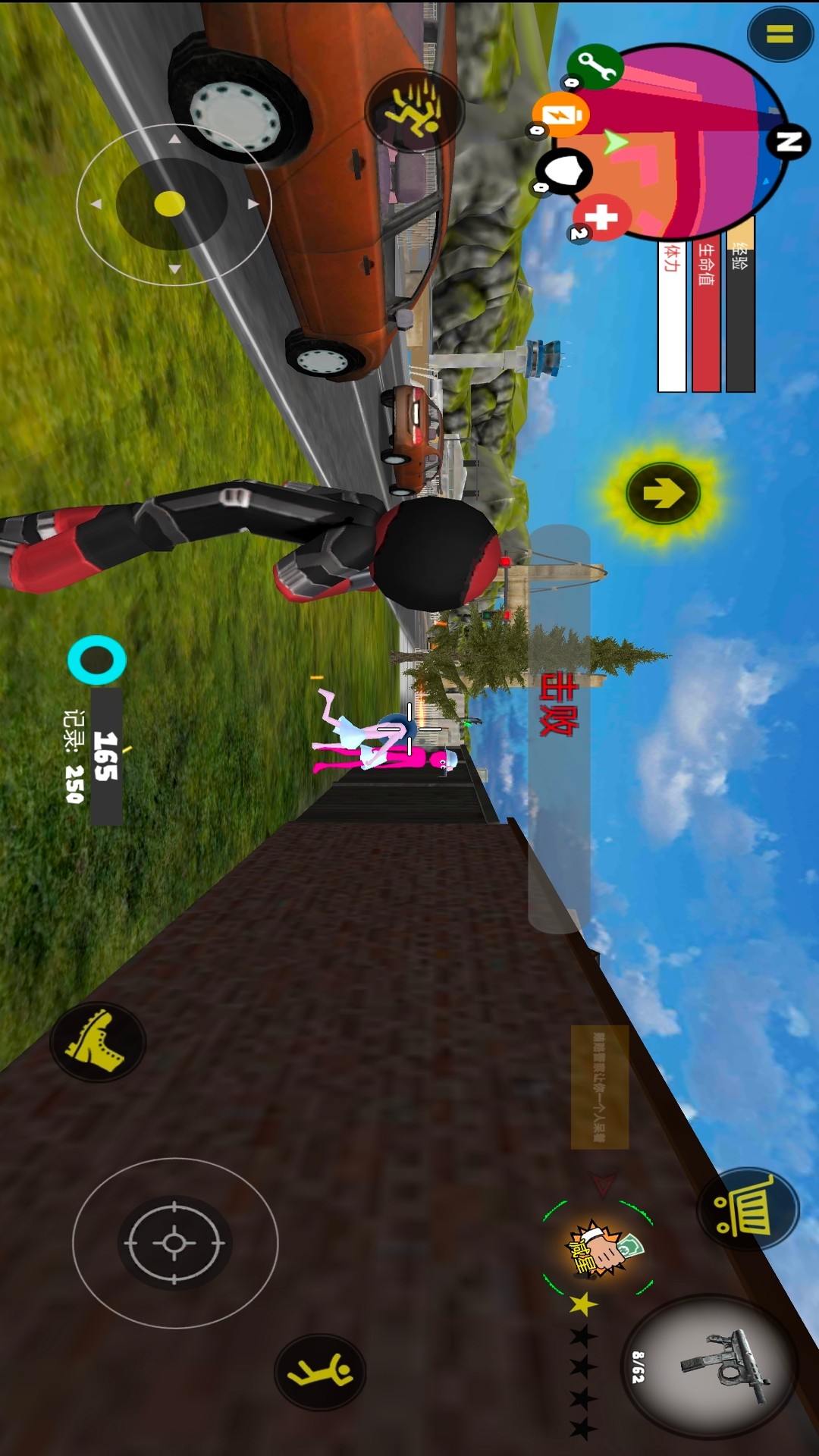 子弹擦过脚腕,角色借反作用力空翻三周半,落地瞬间骨骼复位,发出咔哒一声机械脆响,像折纸又被重新摊平。游戏中的物理反馈极其真实,每个碰撞都会产生相应的反应。玩家可以充分利用环境中的各种元素进行战斗,比如借助墙壁反弹攻击,或者利用障碍物躲避敌人火力。