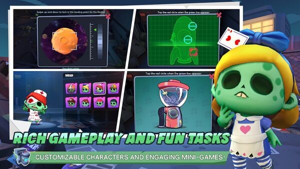 游戏呈现了一个既可爱又危险的僵尸世界!通过高品质的3D渲染技术,每个角色都栩栩如生,每张地图都独具特色。从废弃的太空站到神秘的实验室,多样化的场景设计将带给玩家极致的视觉享受和沉浸式的游戏体验。