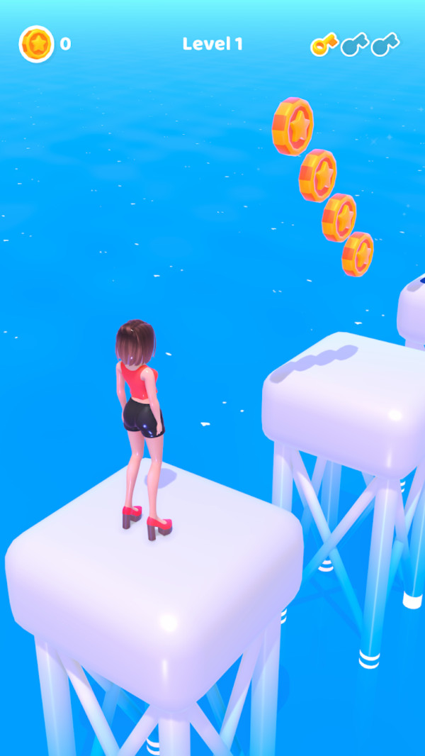 然后可以开始挑战的关卡,当他在跑道上全速奔跑时,必须不断地高跟鞋;游戏创新性地将高跟鞋元素融入跑酷玩法中,为传统跑酷游戏带来了全新的体验。