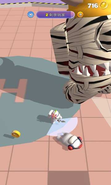追不到你是一款充满创意与欢乐的竞技游戏。在色彩斑斓的3D场景中,玩家可以使用各种脑洞大开的武器展开混战——无论是发射火箭的巨型喇叭,还是能卷起旋风的陀螺,甚至是会爆炸的冰箱都能成为你的制胜法宝。随着击败对手积累能量,你的角色会不断进化出更夸张的攻击方式。但要注意观察战场动态,那些看似滑稽的道具可能暗藏致命杀机,稍有不慎就会让你功亏一篑。