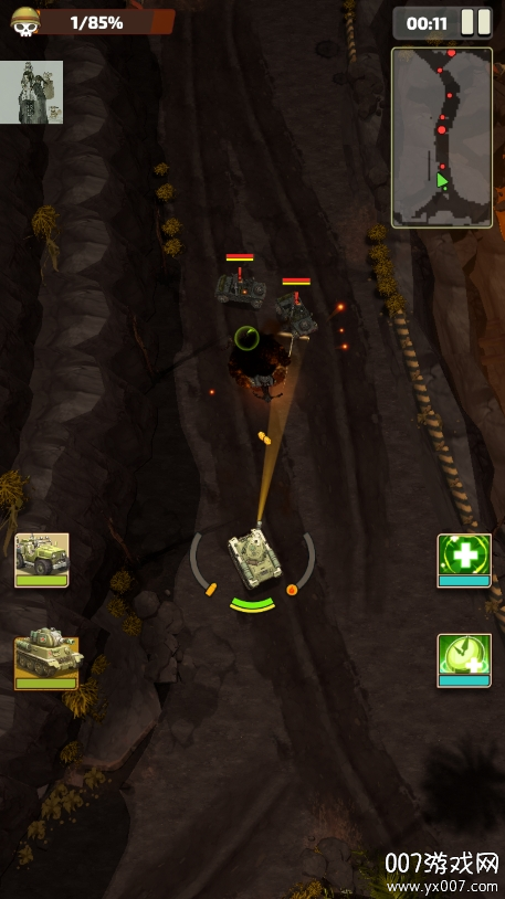 游戏操作简单易学:首先通过按住屏幕上的方向盘来控制坦克的移动方向;当坦克停止移动时,系统会自动锁定并攻击附近的敌人;如果陷入敌人的包围圈,需要迅速操作坦克撤离危险区域;长按屏幕可以蓄力释放特殊技能;当坦克受到损伤时,要及时使用修复技能恢复战斗力;按照任务指引将坦克移动到指定位置;最终目标是摧毁敌方营地,完成任务后可以获得丰厚的奖励。