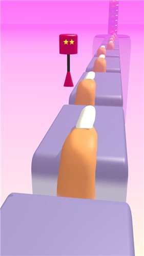 游戏中的指甲油瓶会自动前进,但你需要通过精准的滑动操作来调整位置,确保每个指甲都能被完美覆盖,这种独特的操作方式带来全新的游戏体验。