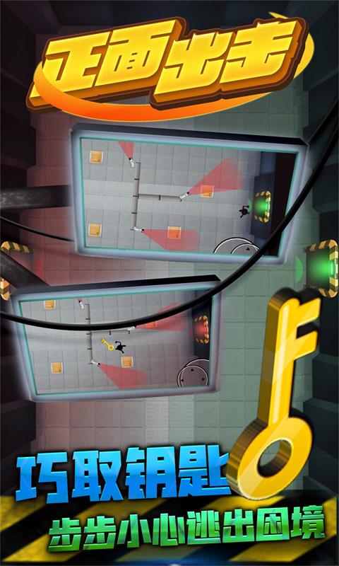 《正面出击》是一款充满创意与挑战的休闲逃脱类小游戏,玩家将扮演一名灵活的火柴人,在错综复杂的密室中寻找逃脱路线。游戏的核心玩法是巧妙避开巡逻的灯光,同时收集钥匙解锁下一关卡。场景中布满了障碍物和陷阱,需要玩家运用敏捷的操作和策略思维规划路线。随着关卡推进,难度逐渐提升,更多新颖的机关和谜题等待探索。简洁明快的画风搭配紧张刺激的逃脱体验,让每场冒险都充满惊喜。