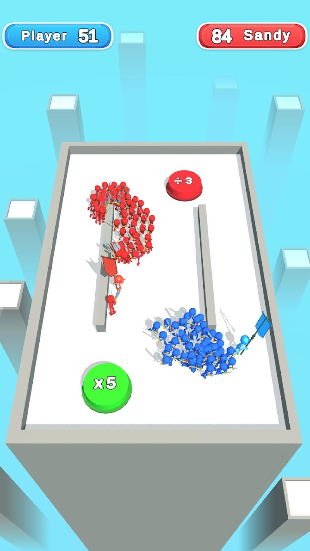 在《最强军队》中,你需要高举旗帜引领队伍前进,通过巧妙的走位集结更多同伴来扩大队伍规模。游戏中的乘数机制让队伍增长更具策略性,但要注意球场会不断旋转改变地形。你的对手会与你争夺每一个关键通道,当人数处于劣势时更要谨慎应对。动态变化的场景和实时对抗的策略性,让每一次对决都充满紧张感。只有灵活运用战术,才能在这个旋转的竞技场中称王称霸。