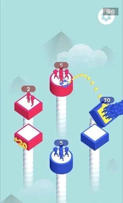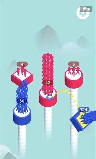 迎男而上,简单的控制来壮大你的军队,拖动,跳跃,通过精准的操作让方块队伍不断壮大,最终形成壮观的人梯。